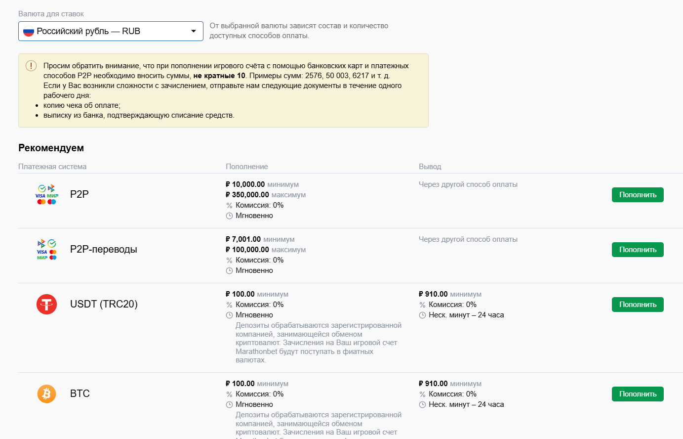 Может потребоваться минимальный оборот депозита;